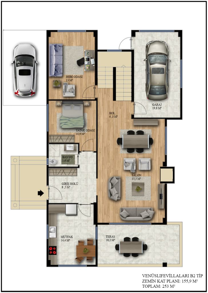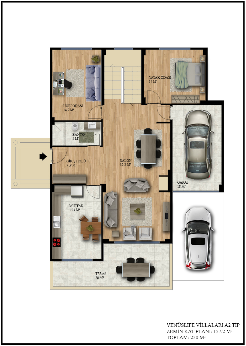 - 250m2 yaşam alanı